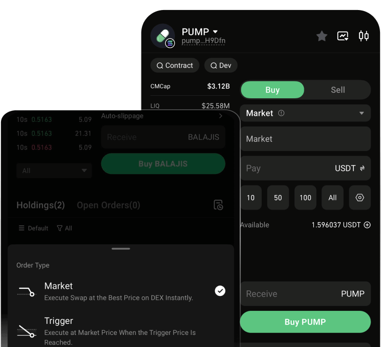 No wallet. No cross-chain hassle.Deposit USDT and start trading instantly — access tokenized U.S. stocks, trending MEMEs, and a full range of premium on-chain assets.