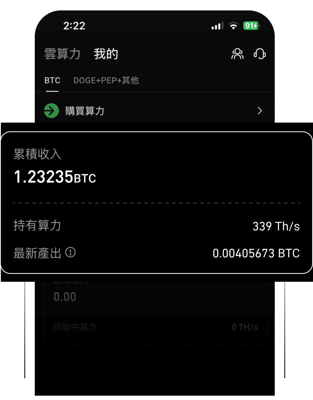 挖礦收益 = 過去24小時每算力單位的挖礦收益 * 訂單算力值 數據來源:平台的每日挖礦收益數據參考全球領先礦池的數據,包括 ANTPOOL、F2POOL、Luxor 等行業知名礦池的每日數據。